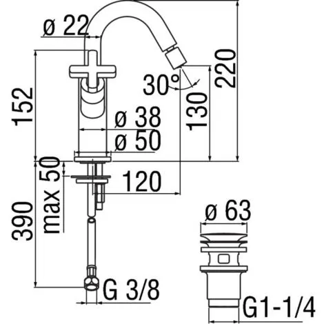 Mitigeur de bidet 2 trous monocommande avec bec pivotant et vidage 1 « 1/4 clic-clac | Nobili Rubinetterie Lira LR116219/2CR