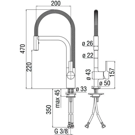 Mélangeur d’évier de cuisine au style unique et moderne, aux lignes douces et sinueuses et comprend un bec pivotant pour faciliter le nettoyage et le lavage de la vaisselle et une douche à deux jets: vous pouvez choisir entre jet simple et jet micro-jet selon vos besoins utile