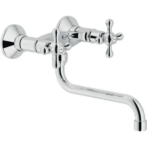 Un mĂ©langeur d’Ă©vier de cuisine mural classique, Ă©lĂ©gant et fonctionnel, avec un design rappelant une Ă©poque rĂ©volue et avec des lignes courbes et sinueuses. Grazia of Nobili crĂ©e un environnement luxueux et unique en son genre