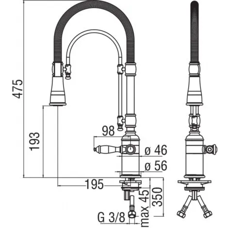 Le mitigeur d’évier de cuisine a un design rétro et unique avec une forme originale et exclusive, il dispose d’un bec rotatif à 360° pour faciliter le nettoyage et le lavage de la vaisselle tandis que la douche est réglable et équipée de deux jets au choix: jet unique ou jet micro-goutte selon les différents besoins d’utilisation