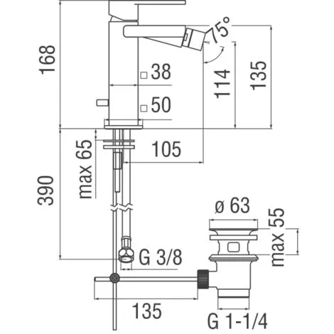 Mitigeur de bidet monocommande avec vidage 1″1/4 et jet réglable |Nobili Rubinetterie Loop LP90119/1CR