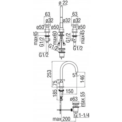 Mitigeur lavabo 3 trous avec bec pivotant et vidage 1″1/4 | Nobili Rubinetterie Lira LR116211/1CR