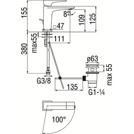 Mitigeur monocommande de lavabo avec vidage 1″1/4 |Nobili Rubinetterie Seven SEE124118/1BM