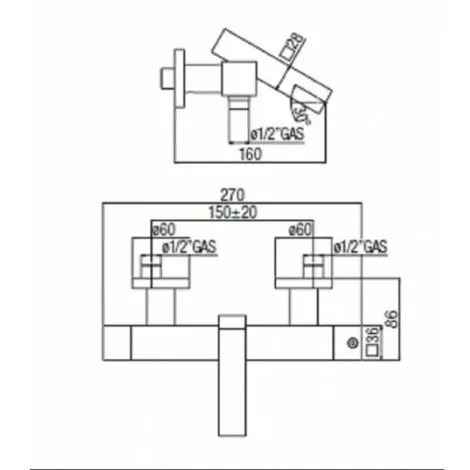 Sortie Ø 1/2″Entraxe de 150 +/- 20
