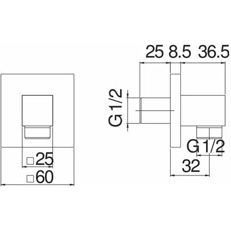 Entrée d’eau en laiton, modèle carré, raccords standard 1/2″G | Nobili Rubinetterie AD150/3BM